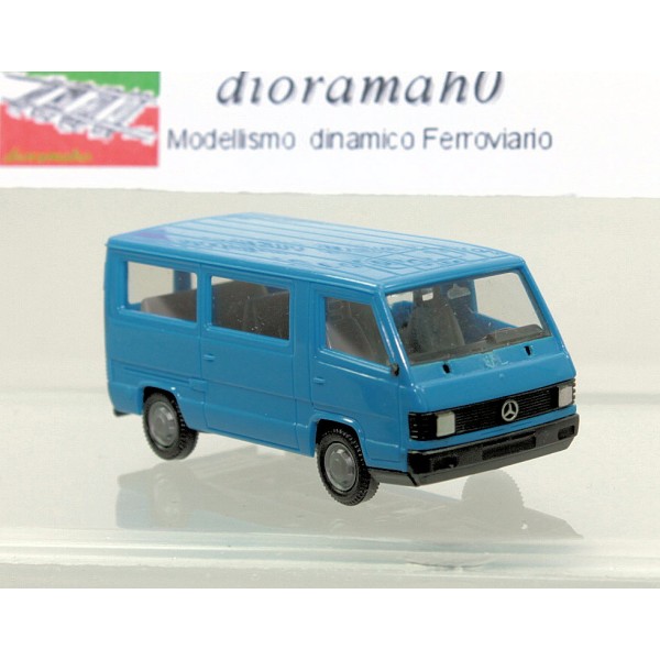 Furgone Mercedes Benz 100 blu neutro da scritte- quindi potete volendo inserire decal adesivi nel mezzo per personalizzarlo, scala 1/87 come da foto. Confezione originale.