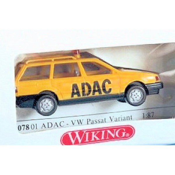 VW Passat variant colore giallo con lampeggiante arancione, scritta logo ADAC, prodotto ben fatto in scala 1/87. Confezione originale.