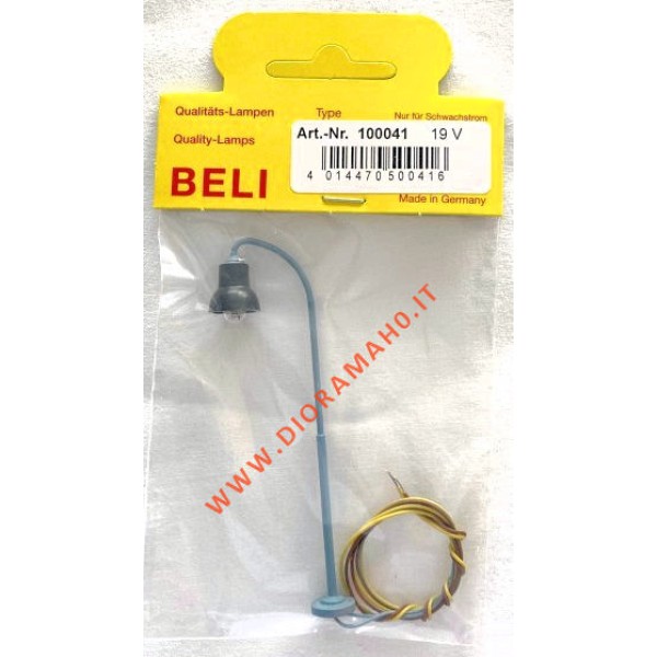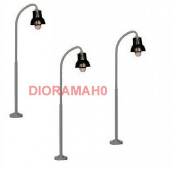 Lampione curvo con portalampade superiore color nero, altezza: 87 mm. Completo di filo e lampadina, facile da installare nel diorama del tuo plastico ferroviario, Sono disponibili lampadine per futuri ricambi.