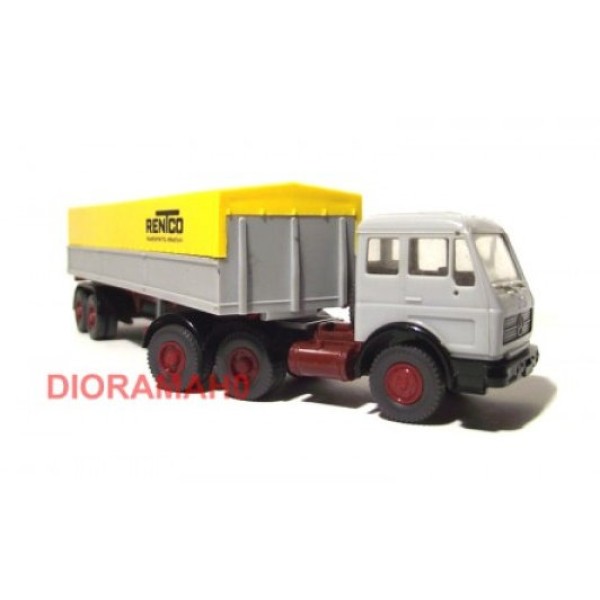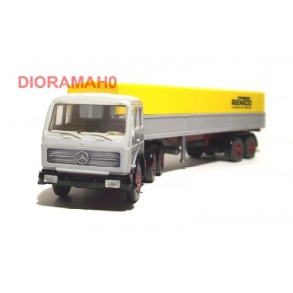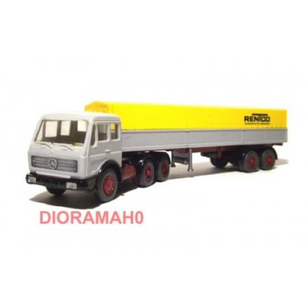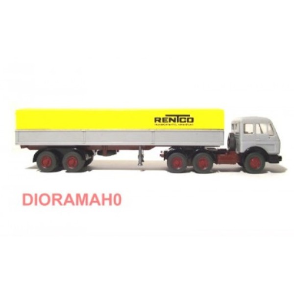 WIKING Autoarticolato Mercedes autotrasporti RENTCO, con cassone telonato removibile, motrice a tre assi anni 80, fedele riproduzione in scala H0 1/87.