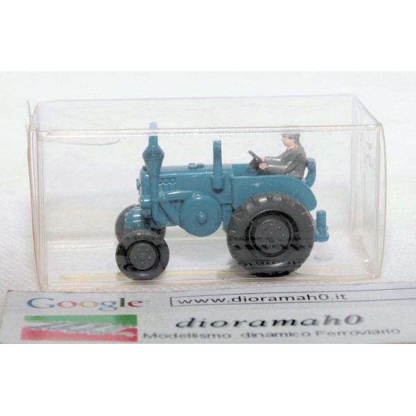 Trattore blu Lanz con operatore per fattorie, aziende agricole, lavori nei campi.... in scala 1/87.
