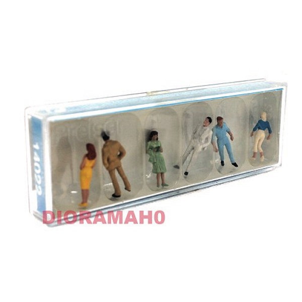 Set di personaggi passanti colorati in diverse posizioni, perfetti per arredare il vostro plastico ferroviario e per rendere le vostre città, paesini più popolati e allegri !! Nella scatola si possono trovare sei personaggi di sesso differente al minimo dettaglio.