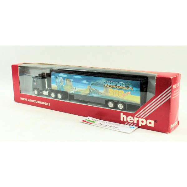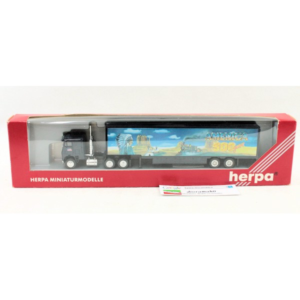 Camion americano con logo 500 anni scoperta dell'America, camion con motrice in stile americano, scala1/87.