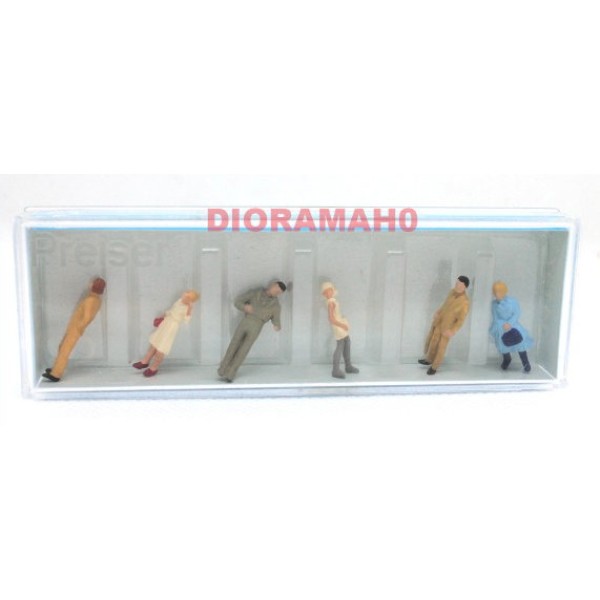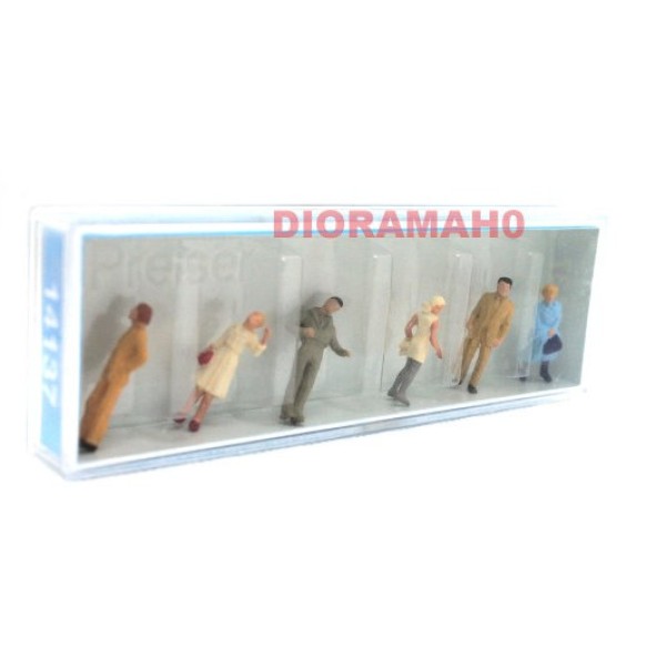 Set di passanti in varie posizioni, personaggi di vario sesso e colorati, da collocare in qualsiasi parte del vostro plastico ferroviario ad esempio per le città, stazioni dei treni, parchi... Nella confezione troverete sei passanti al minimo dettaglio della casa Preiser.