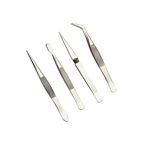 Le pinzette lunghe circa 110 mm sono a punta dritta, a forcella piatta, incrociata, a punta inclino a gomito.