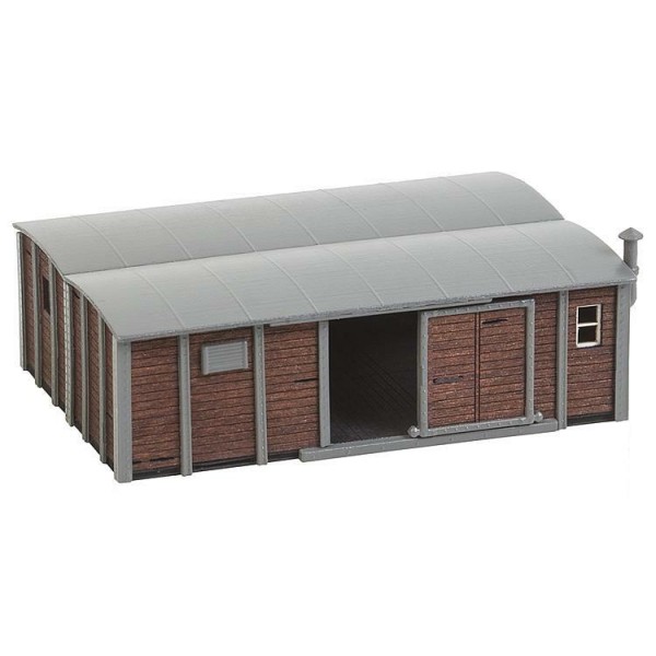 Doppio capannone in stile legno, le prime rimesse per piccoli carri, epoca I - riprodotto in scala 1/87. Dimensioni: 94 x 68 x 39 mm. Kit di montaggio con istruzioni, serie laser cut.