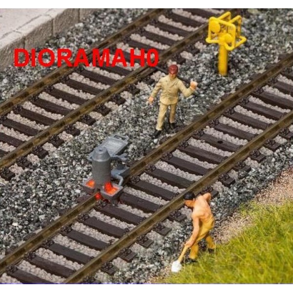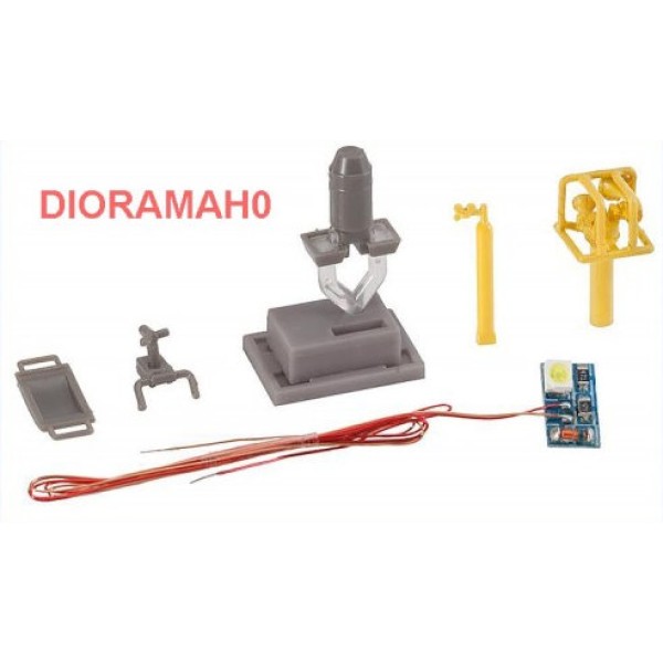 Saldatrice di binari con effetto luminoso a led, come da foto un elemento scenografico da porre in una linea ferroviaria in costruzione o in manutenzione, bellissimo effetto dinamico di luce, la saldatrice è per plastici ferroviari in scala 1/87. Il kit contiene: 39 articoli in 3 colori, 1 LED e 1 manuale di costruzione. Epoca IV