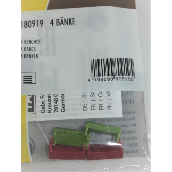 Set di quattro panchine di color verde e rosso mattone, perfette da collocare sui parchi e ai centri del paese.