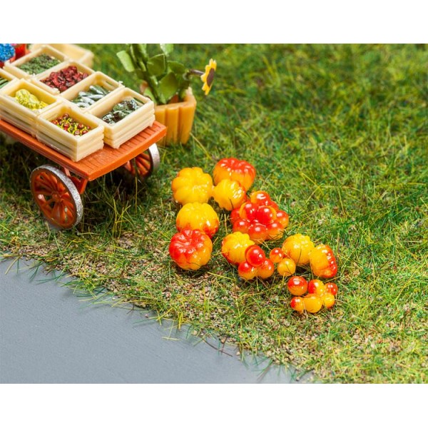 22 Zucche colorate in diverse dimensioni per decorare campi di zucche o nelle cassette del mercato o Halloween ecc in scala 1/87 H0.