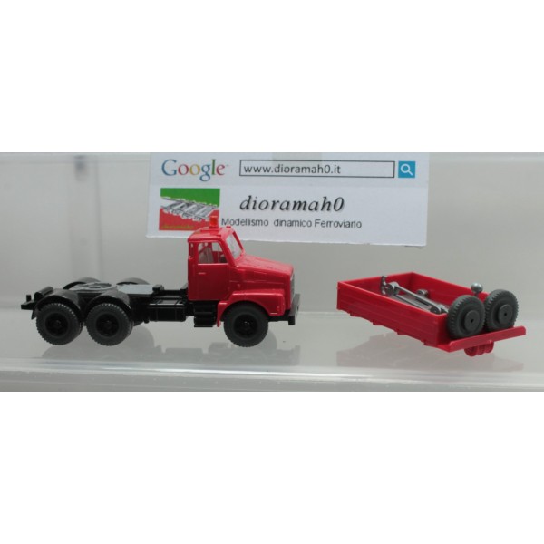 Carroattrezzi per veicoli pesanti, un mezzo di soccorso per il traino dei trattori stradali (camion) pullman trattori agricoli.... Il cassone volendo è estraibile, trasformando il camion VOLVO in motrice per TIR, il gancio posto nel cassone è retraibile per poter agganciare il mezzo da soccorrere. Colore rosso come da foto. Confezione sacchetto.
