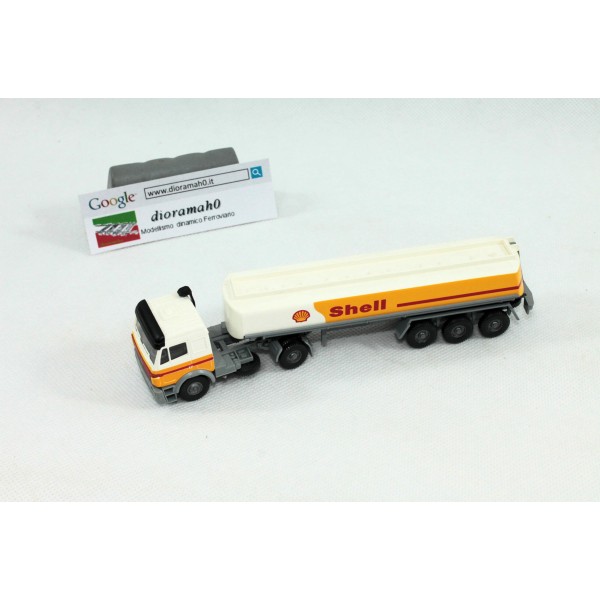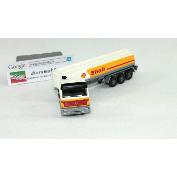 MB Autoarticolato cisterna carburanti SHELL, scala 1/87, usato confezione sacchetto.