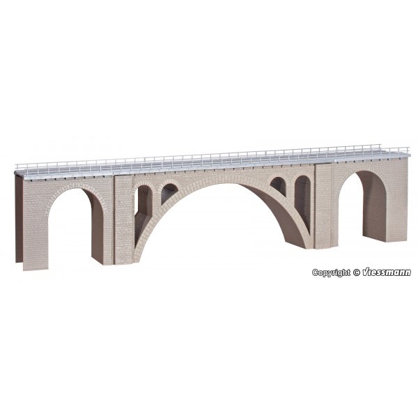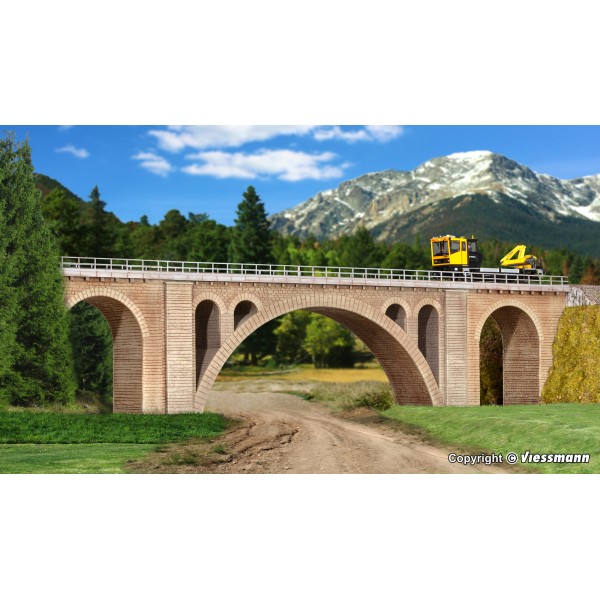 Ponte ferroviario in mattoni con archi romani, per un solo binario. Molto ben rifinito e curato, adatto anche per binari Märklin serie "C" . --kit di montaggio.-- Facile da montare, si consiglia l'invecchiamento del viadotto per dar maggior effetto al vostro diorama/plastico ferroviario. Nei viadotti KIBRI è possibile installare l'art. 39754 Kibri - Supporto per fissaggio palo catenaria.