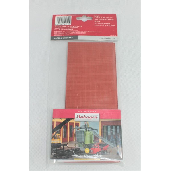 Due coppie di tetto a tegole (4 lastre in pvc) stile italiano, per realizzare due tetti per edifici, stile italiano con tegole color arancio/rosso (vedi foto). I 4 fogli o lastre misurano: 20X8 cm, sono predisposte per un'inclinazione da 35° a 55° quindi con molto facilità realizzare tetti perpendicolari perfetti.