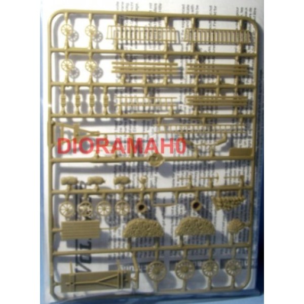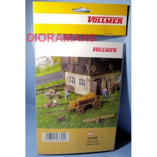 Set accessori per la fattoria o a vostra scelta in altre situazioni. Scale, carri, file di legna accatastate, ruote, ceppi, sacchi, tutto in pvc colorato come da foto, fedele riproduzioni di accessori vari in scala H0 1:87. Plastici ferroviari perfetti nei minimi particolari!!
