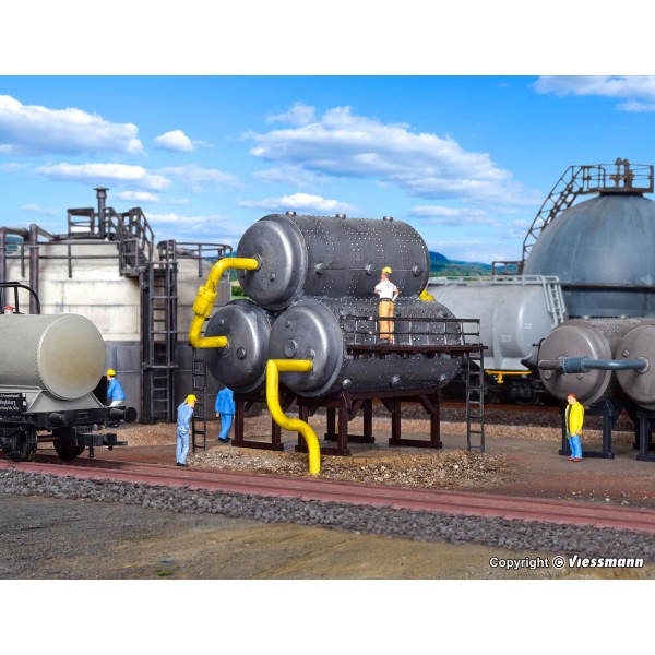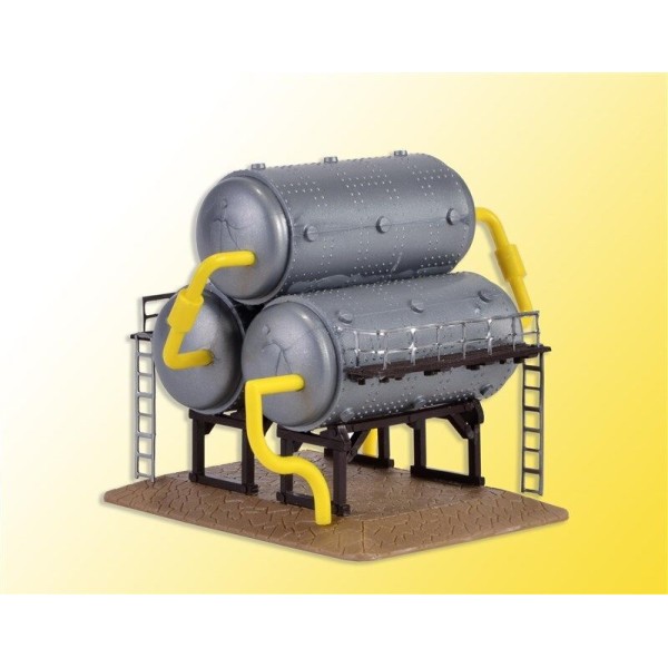 Cisterne orizzontali, serbatoi triplo come da foto in kit di montaggio, stoccaggio gas o liquidi per raffinerie depositi ferroviari ecc. Riproduzione fedele in miniatura scala H0 1:87 per plastici ferroviari.