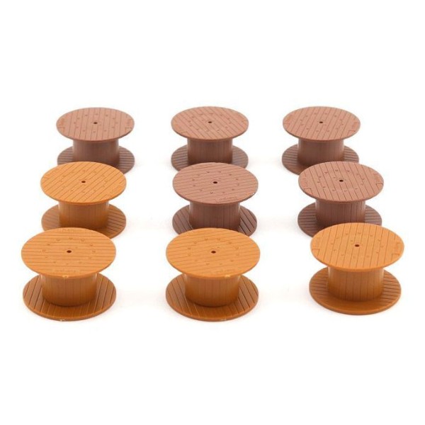 Nove bobine in due colorazioni come da foto, scala 1/87. Elementi scenografici per carichi su auto mezzi, carri merce, magazzini.