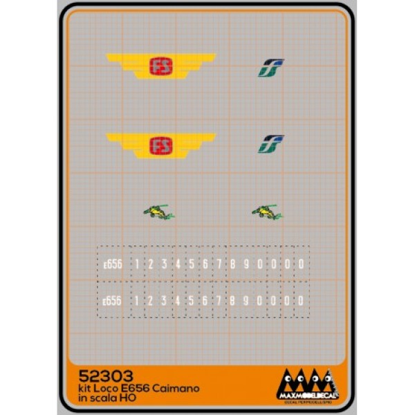 Kit per loco E656 Caimano in scala 1/87, completo di numeri in colore bianco per il frontale. Per livree danneggiate o rovinate dal tempo, oppure ricostruzione e/o trasformazione di un tuo convoglio ferroviario!