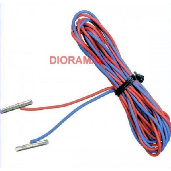 Cavetto di alimentazione tracciati ferroviari Piko. Per installare binari con sezioni isolate elettricamente, o si vuole dare corrente solo ad alcuni spezzoni dei binari, si deve utilizzare queste speciali scarpette con cavetti di collegamento, quindi sostituire le scarpette del binario da isolare non questo. Scarpette in metallo con cavetto di contatto in confezione da due pezzi. Articolo originale Piko, cavo a norma colorato rosso/blu per un corretto collegamento. Plastico ferroviario sicuro con la cavetteria Piko!!