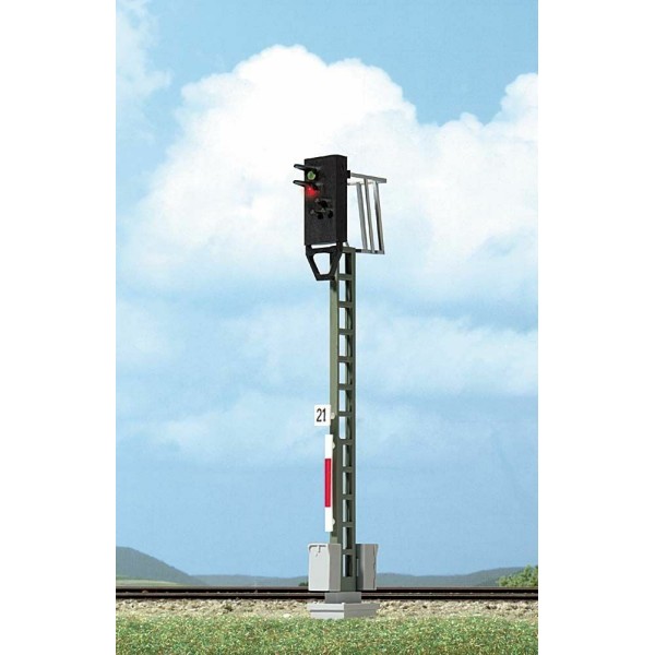 Segnale di blocco - semaforo a 2 LED, controllo: rosso o verde. I modelli Busch sono repliche in scala degli originali. Una nuova tecnica di stampaggio ad iniezione di materie plastiche ha permesso di rendere le parti fini e filigrane come in precedenza era possibile solo usando la tecnica di incisione in ottone. I diodi a emissione luminosa assicurano una durata illimitata, effetti di illuminazione prototipici e un basso consumo energetico. I segnali possono essere incollati o perforati nella piastra di base del sistema utilizzando un piedino a innesto intercambiabile.