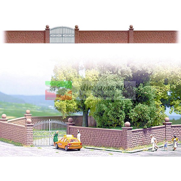 Recinzione in muratura con cancello stile ferro battuto, 80 cm lunghezza.