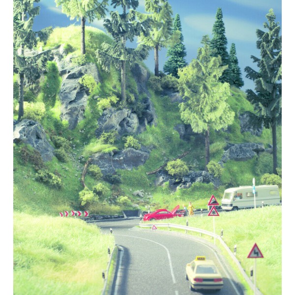 Strada statale con asfalto color grigio e segnaletica orizzontale, misura totale: 1000 X 80 mm. Noch ha pensato anche alle curve vedi 60704, Costruisci i tuoi tracciati stradali con questo pratico e veloce prodotto, nel plastico ferroviario aggiungi le autovetture, semafori i lampioni.. in scala H0!  Per semplificare: data la larghezza della strada è da considerarsi una strada statale - tagenziale