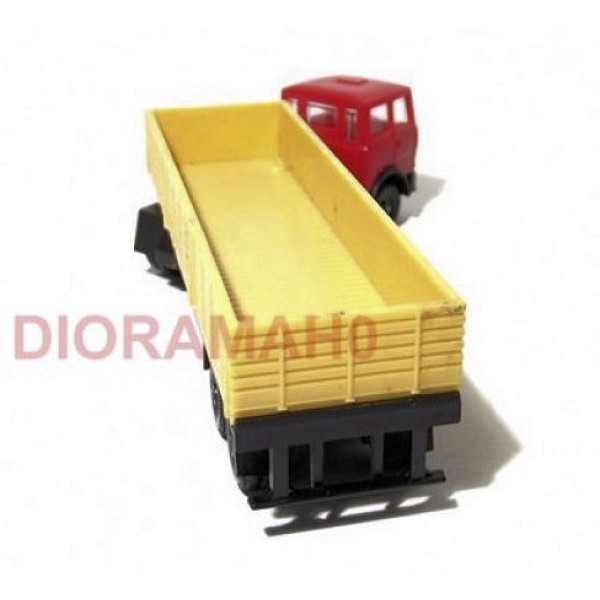 Camion aperto con cabina color rosso, (vedi foto) Originale Lima, motrice iveco anni 80 a tre assi. Funzionante, elemento scenografico per plastici ferroviari in scala H0 1/87.