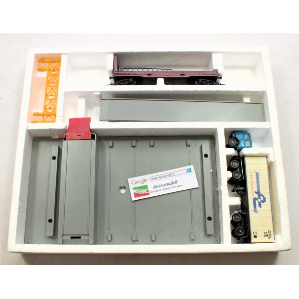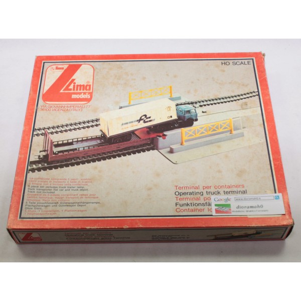 Terminal per containers completo, (usato) mai utilizzato presente quindi tutti gli accessori come da foto, scala 1/87. Scatola in buone condizioni con tracce del tempo vedi foto.