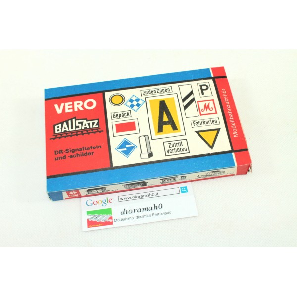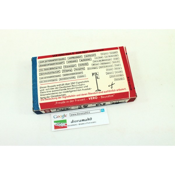 Segnaletica ferroviaria completa, in scala 1/87. D installare lungo le linee ferroviarie. Come da foto con decal pali in plastica in semplice kit di montaggio. Marca Vero modell azienda tedesca chiusa negli anni 90.. . Fondo di magazzino. Vedi foto.