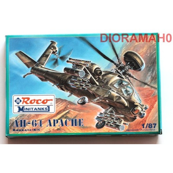 ROCO Minitanks elicottero AH 64 Apache in kit di montaggio per una perfetta riproduzione in scala 1/87. Plastici ferroviari con diorami militari perfetti con i mezzi minitanks di ROCO.