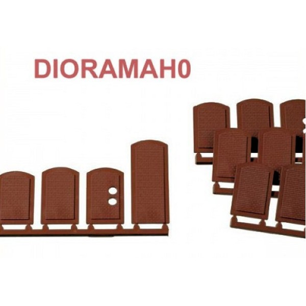 16 Finestre e porte murate color rosso mattone, in perfetto stile italiano, costruire un edificio coloniale abbandonato con le finestre murare contro il pericolo di un crollo o di abusivismo. Le finestre sono così composte: 4 12X20 mm. -- 4 12X22 mm. -- 4 12X22 mm. (con due fori per la ventilazione) -- 4 12X36 mm. (porte).