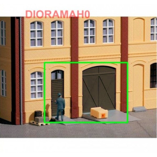 Set di 22 pezzi composti da porte e portoni da garage, rampe di accesso per il carico e scarico di materiali, ottimi da collocare in aziende tipo corrieri uffici postali magazzini e depositi... Materiale pvc colorato in perfetta scala H0 1:87. 2 cancelli 33 x 37 mm - 6 porte 12 x 36 mm - 2 porte 12 x 28 mm - 2 Rampe 33 x 37 mm - 2 Rampe 12 x 24 mm - 8 Scale 12 x 6 mm