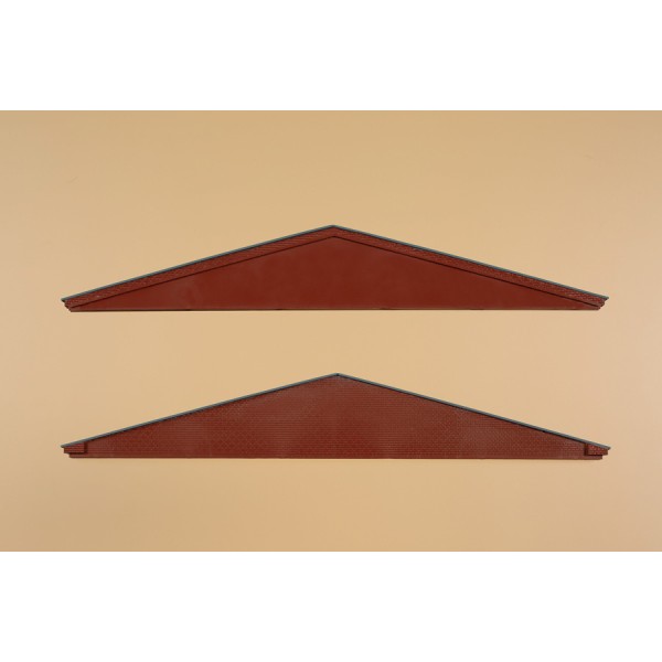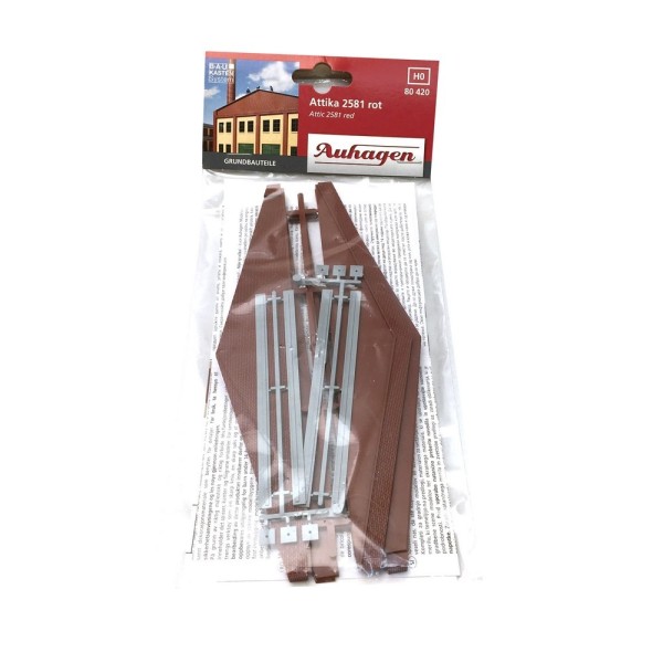 Attika cornice seminterrato color rosso in scala 1/87. Come da foto il muro è la cornice a triangolo per seminterrati, ottimo per lo stile italiano: per fabbricati civili e industriali. Dimensioni; 203 x 5 x 32 mm. per due pezzi.
