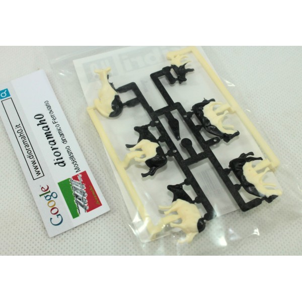 Set di sei mucche bicolore bianco/nere in diverse posizione, scala 1/87.