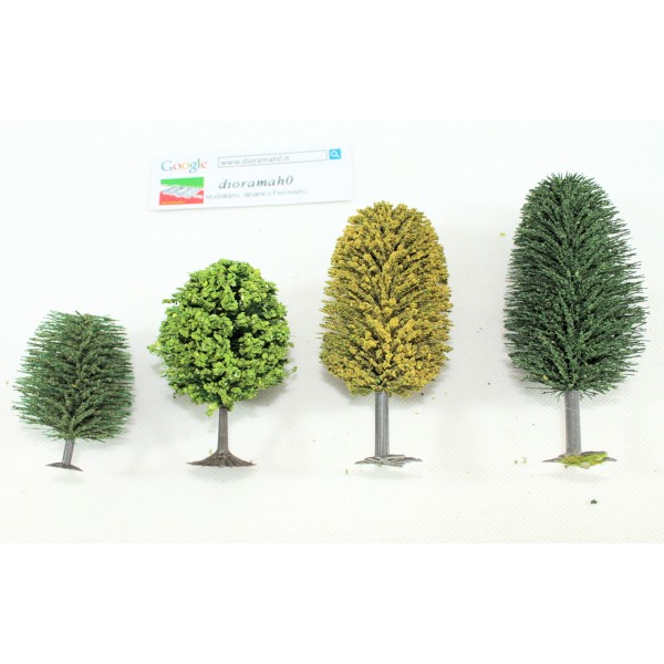 Alberi misti Noch, varie tonalità con altezza da 6 a 12 cm. circa come da foto, usato- nessuna mancanza- possibili tracce di colla alla base delle radici- semplice da rimuovere. Scala H0 TT N. Confezione con 4 pezzi.