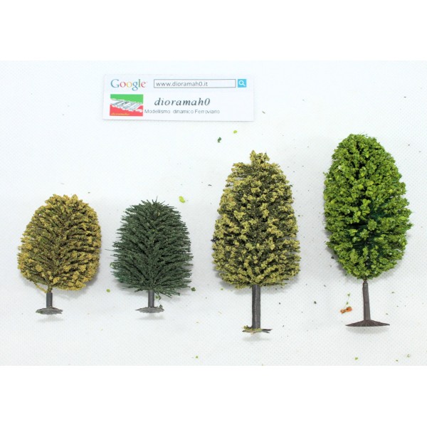 Alberi misti Noch, varie tonalità con altezza da 6 a 10,5 cm. circa. Alberi come da foto, usato- nessuna mancanza- possibili tracce di colla alla base delle radici- semplice da rimuovere. Scala H0 TT N. Confezione con 4 pezzi.