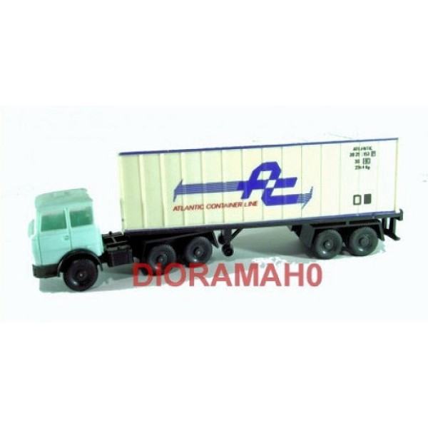 Camion container con logo "ACL", con motrice a tre assi tipo Fiat 50' - cabina colore come da foto. Originale Lima, usato e funzionante, elemento scenografico per plastici ferroviari in scala H0 1/87.