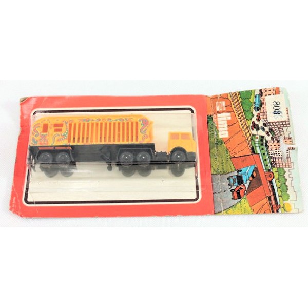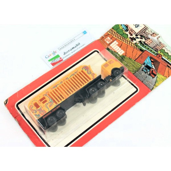 Camion circo con cabina classica color gialla, Originale Lima, motrice Iveco anni 80 a tre assi. Funzionante, elemento scenografico per plastici ferroviari in scala H0 1/87. Vedi anche versione 60 08063 Lima