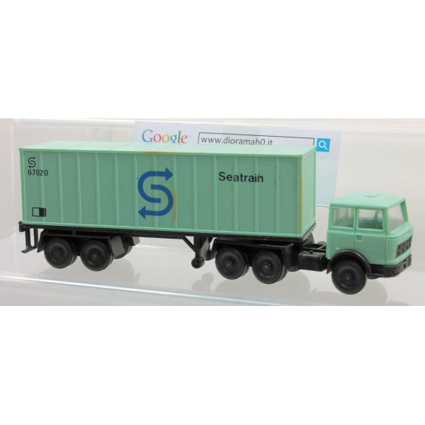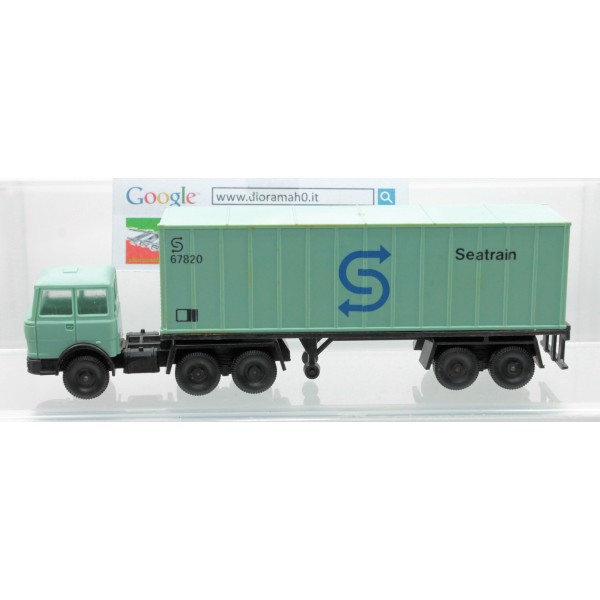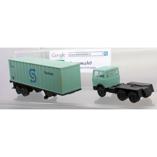 Camion container "SEA TRAIN" Lima model. Usato. Originale Lima, motrice Iveco anni 80 a tre assi. Funzionante, elemento scenografico per plastici ferroviari in scala H0 1/87.
