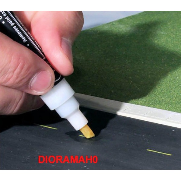 Pennarello bianco per disegnare la segnaletica stradale nel plastico ferroviario, disponibile anche il corore giallo e il rosso. Aiutati con il righello flessibile per ottimizzare il proprio disegno.