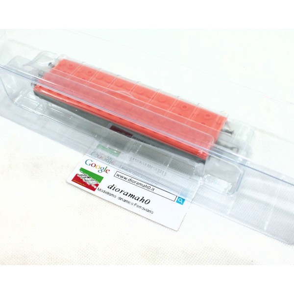 Carro porta mattoncini Lego, il pianale come da foto è realizzato per supportare e fissare alla base i mitici mattoncini Lego, il carro ha gancio a norma NEM e accoppiamento per gancio corto. Raggio minimo 358. Serie HOBBY, corrente continua.