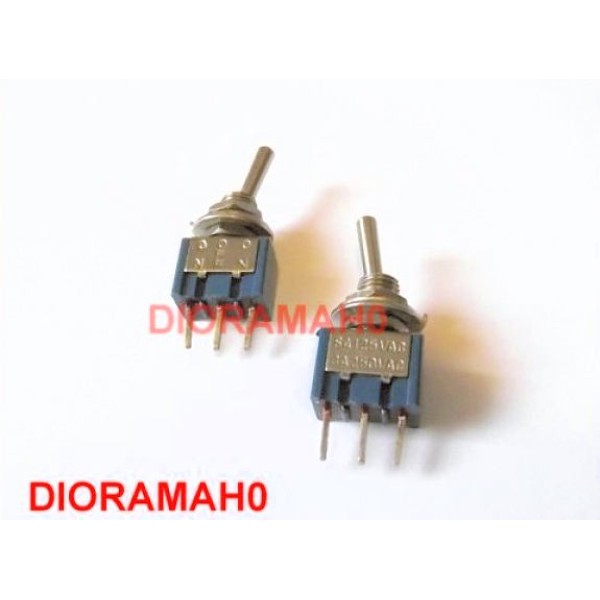 Deviatore in miniatura a levetta da pannello ON-OFF-ON. 3 Poli. Terminali a circuito stampato. Potenza: 125VAC 6A ( 250VAC 3A). A norma CEE. Realizza nel tuo plastico ferroviario in scala H0 (tutte) una regia di comando, controlla le direzioni dei treni, il funzionamento degli scambi e i segnali luminosi nei tracciati.. le illuminazioni delle stazioni ferroviarie, gestire negli edifici privati e pubblici le luci i fumi e gli effetti sonori… è tutto sotto controllo?