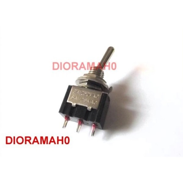 Deviatore in miniatura a levetta da pannello ON-ON. 3 Poli. Terminali a saldare. Potenza: 125VAC 6A ( 250VAC 3A ). A norma CEE . Realizza nel tuo plastico ferroviario in scala H0 (tutte) una regia di comando, controlla le direzioni dei treni, il funzionamento degli scambi e i segnali luminosi nei tracciati.. le illuminazioni delle stazioni ferroviarie, gestire negli edifici privati e pubblici le luci i fumi e gli effetti sonori… è tutto sotto controllo?
