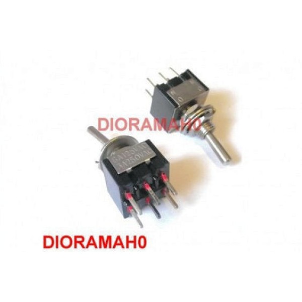Doppio deviatore in miniatura a levetta da pannello ON-ON. 6 Poli. Terminali a circuito stampato. Potenza: 125VAC 6A ( 250VAC 3A ). A norma CEE . Realizza nel tuo plastico ferroviario in scala H0 (tutte) una regia di comando, controlla le direzioni dei treni, il funzionamento degli scambi e i segnali luminosi nei tracciati.. le illuminazioni delle stazioni ferroviarie, gestire negli edifici privati e pubblici le luci i fumi e gli effetti sonori… è tutto sotto controllo?
