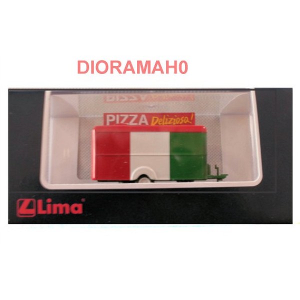 Rimorchio street food per la vendita di pizza. Rimorchio da collocare nel vostro plastico ferroviario in molte ambientazioni ! Ad esempio nelle vaste aree della città dove i turisti e la gente del luogo può gustarsi una deliziosa pizza fatta in casa !! L'oggetto viene spedito con una vetrina espositiva apposta per gli amanti del collezionismo !!