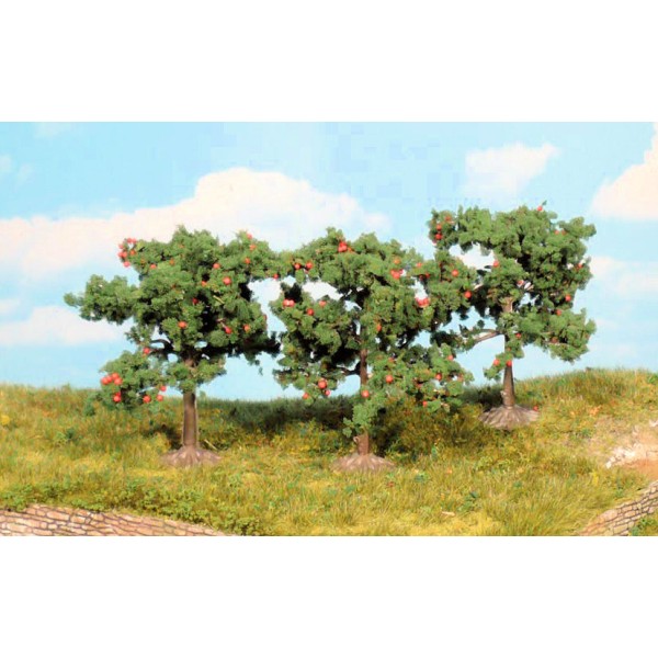 Set di tre alberi di mele alti 8 cm. scala H0 TT N Z.