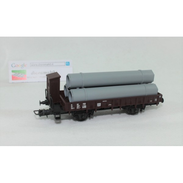 Carro a sponde basse con garitta del frenatore, caricato con tubi neutri (ottimo per chi desidera apporre decal per la personalizzazione).
