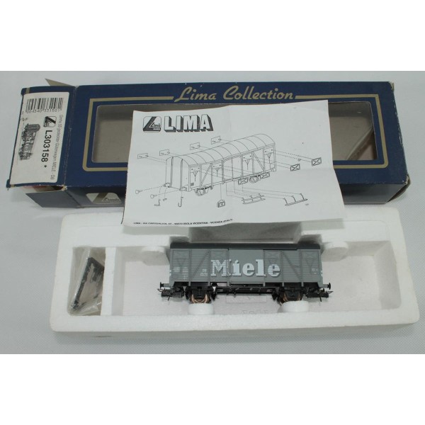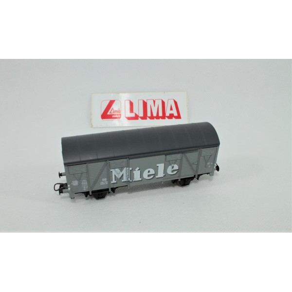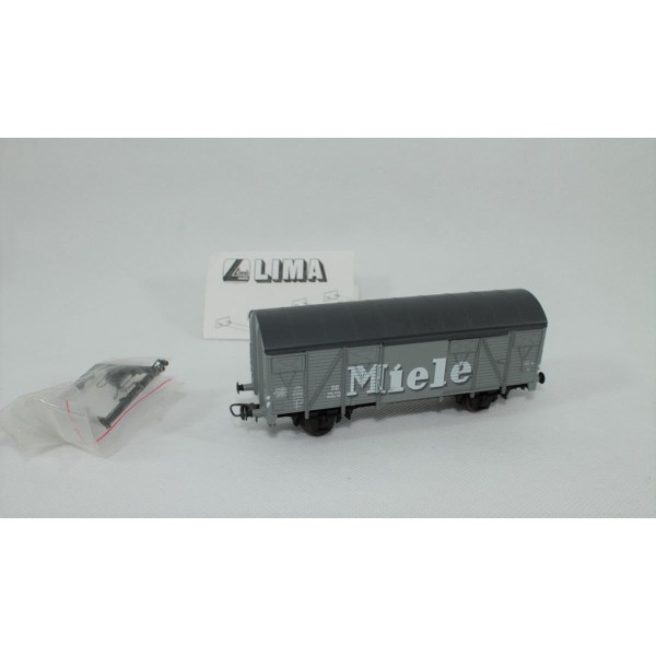 Carro chiuso a due assi con logo MIELE delle DB, LIMA model, usato come da foto con aggiuntivi da finire di installare si presume completo, foglio illustrativo confezione originale. Usato e funzionante in scala 1/87.