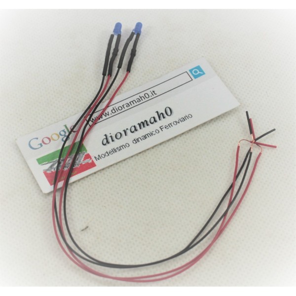 Led pronto all'uso, già cablato con resistenza diodo da 3 mm di colore blu con lampeggio, per simulare i lampeggianti delle forze dell'ordine, cavo lungo circa 15 cm. Due pezzi (coppia) - due led già cablati confezionati in busta.