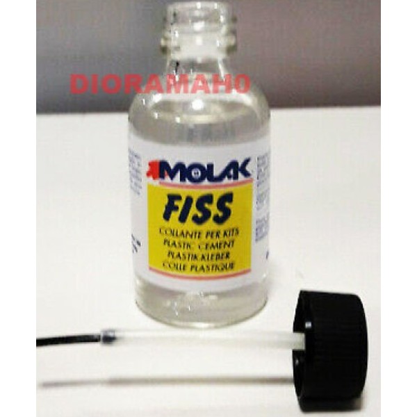 FISS liquida con pennello in boccetta di vetro da 25 ml., collante di precisione per materie plastiche, assemblare in modo semplice facile e veloce.