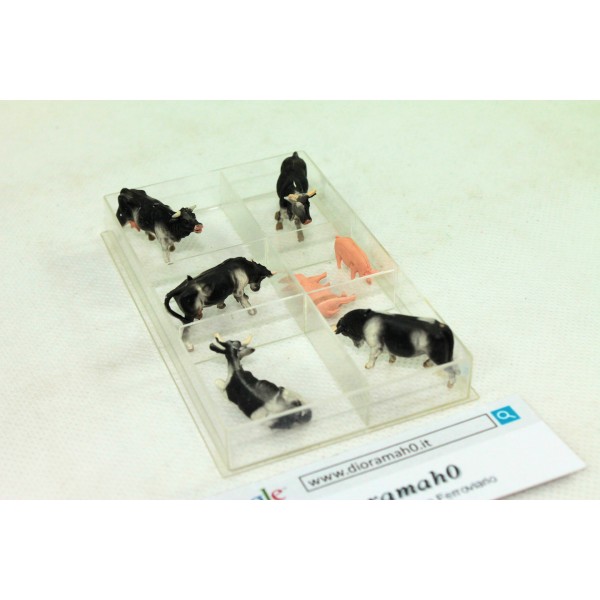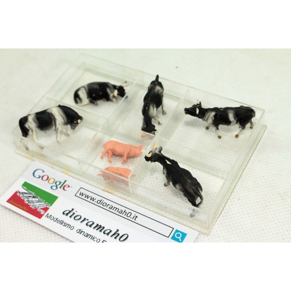 Set di 5 mucche e 2 maiali in diverse posizioni, in scala 1/87. Vedi foto.